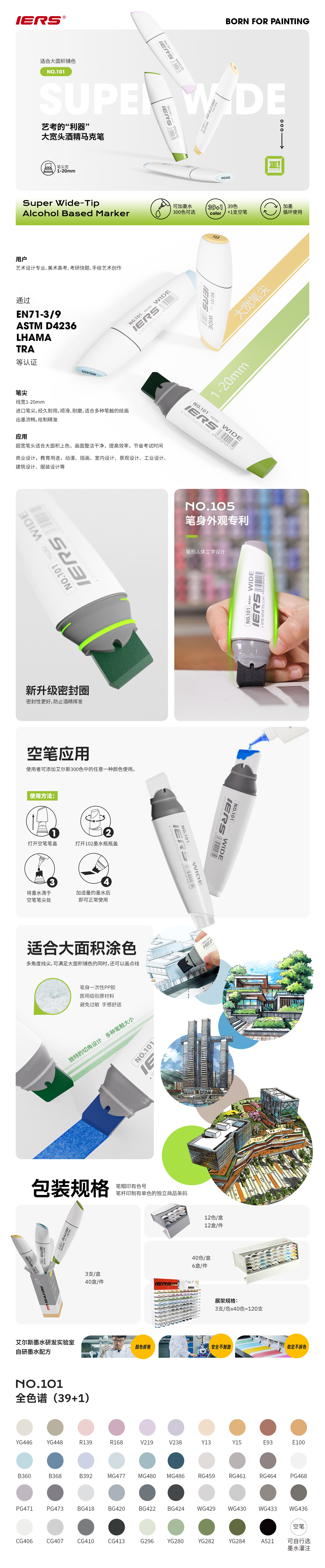 超宽笔头适合大面积上色,画面整洁干净,提高效率,节省考试时间